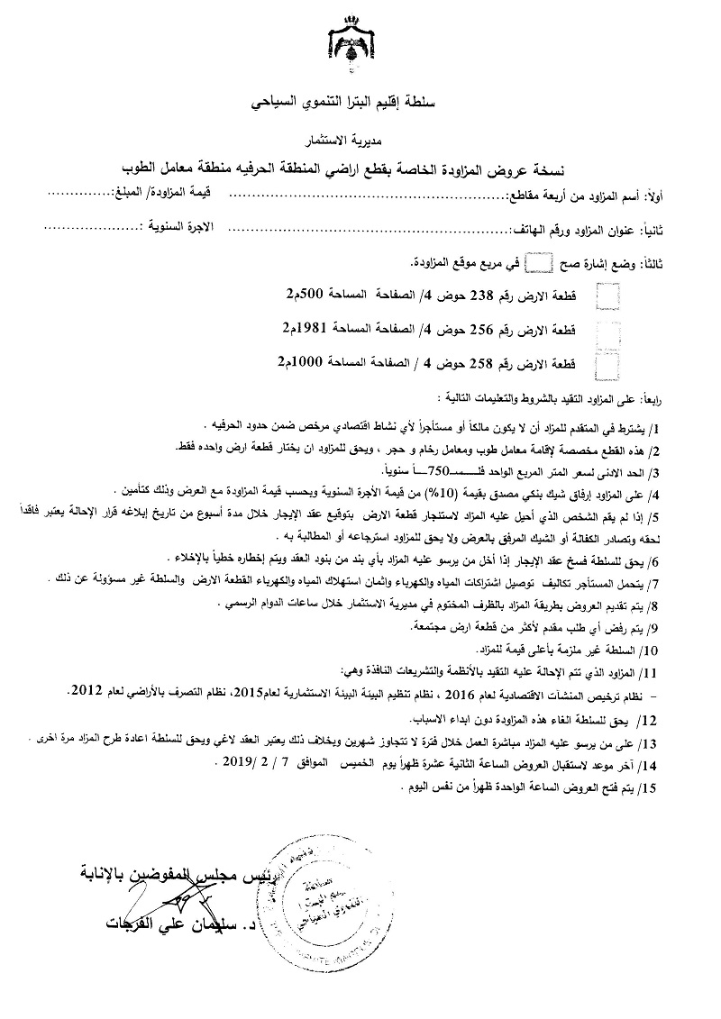 عرض المزاودة الخاص بقطع اراضي المنطقة الحرفية